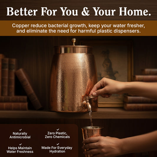 Pure Copper Bedside Water Carafe & Tumbler Set | Overnight Alkaline Water Storage System